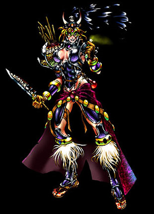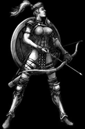 "Die Amazone ist eine Meisterin des Speers und des Bogens und reagiert auf Kampfsituationen mit übermenschlicher Gewandtheit. Sie verlässt sich auf ihre magischen Fähigkeiten, um ihre bedeutenden kämpferischen Fähigkeiten zu verbessern."