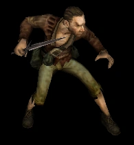 Brigands are humans, and are only armed with their blades, which can serve as both melee and thrown weapons. They do not possess any special skills, except sheer numbers. Nearly all of them are quest or event specific, trying to hunt Lyndon down for his treachery, and are members of the Thieves Guild. They are only encountered in Act I and Act V.