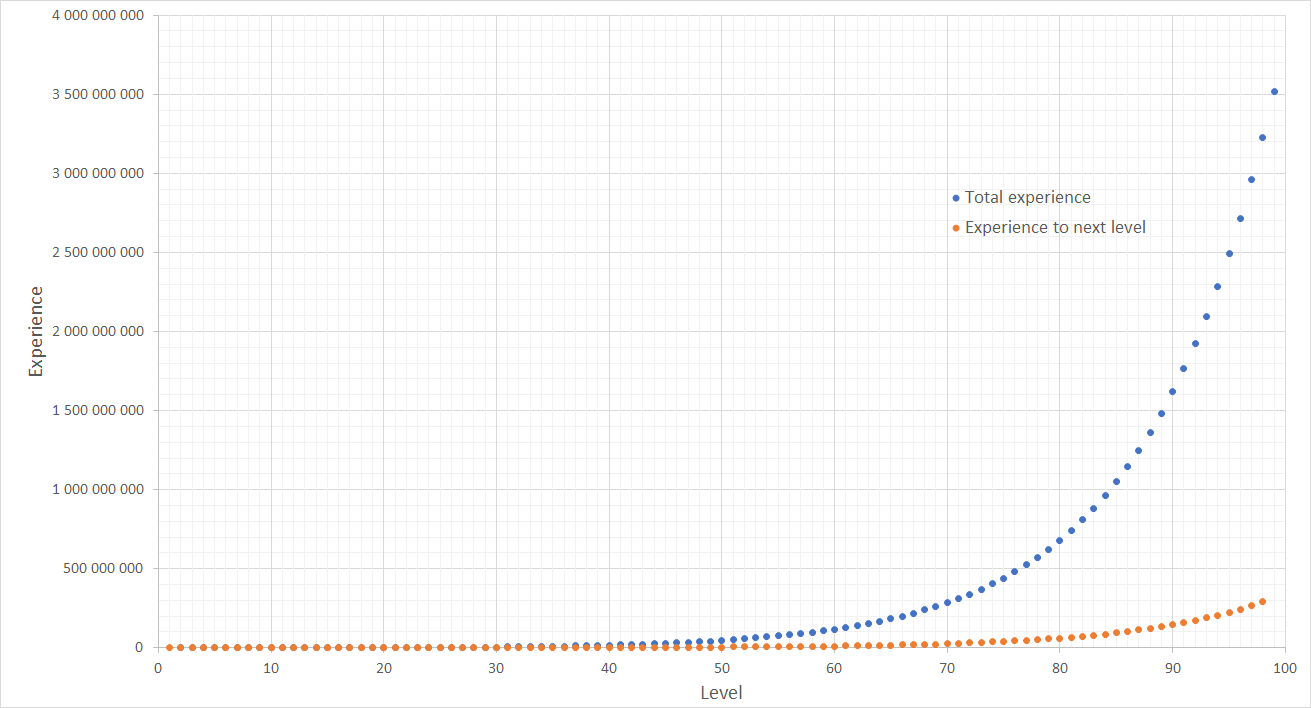 Diagram showing experience needed for leveling-up