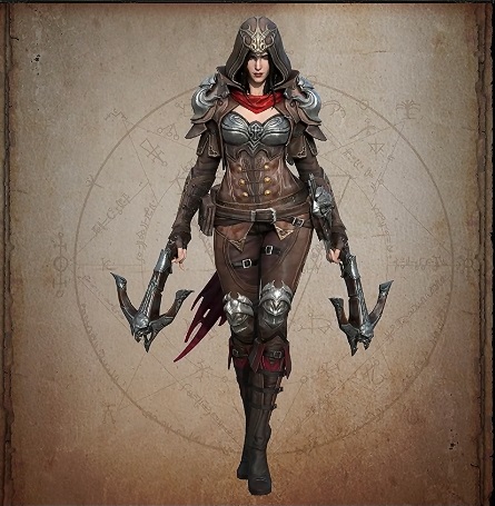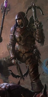 Demon Hunters train to hold back the darkness with unconventional combinations of weaponry and fighting styles that only they can employ. They are masters of the hand crossbow – quick-reloading, fast-firing ranged weapons that they use to turn demons into their temporary quivers. Demon Hunters are so adept in the hand crossbow’s use that they can dual wield them. Other elements of their arsenal include longbows, grenades, and hand-thrown weapons. When hunting packs of demons, Demon Hunters rely on traps to deal with their foes. Demon Hunters can also wield apocryphal magics, to sneak through the shadows and deal with their prey, or escape their foes' notice.