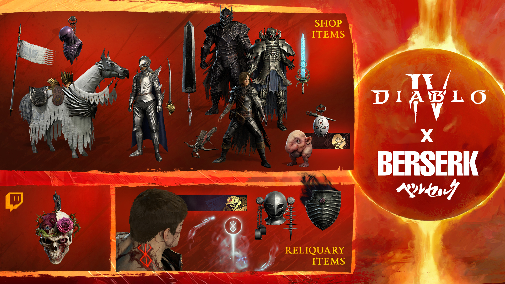 For Diablo IV, the event ran until the end of Season 8. While the event was active, Elite enemies had a chance to drop a special currency called behelits, which could be exchanged for Berserk-themed cosmetic items in the Berserk Reliquary.