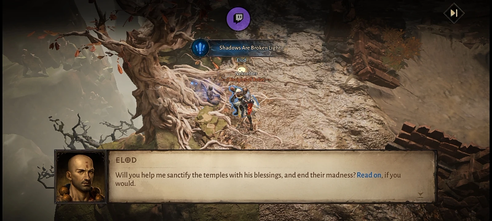 Elod is an NPC that is seen in Diablo Immortal. He is featured in the side quest Shadows Are Broken Light.