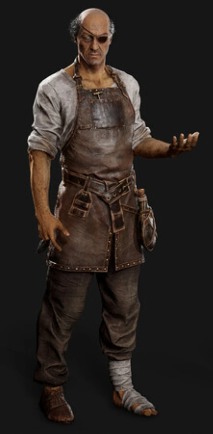 Elzix is an ex-bandit lord who has settled down in Lut Gholein. Now he runs the Desert Rain Inn, gambles with the player, and sells items. He is missing an eye, some of his hand and half of his left foot due to repeated assassination attempts.