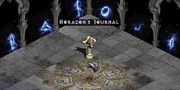 A journal kept by the great Vizjerei mage, Horazon. It describes several great events, such as the imprisonment of Baal in Tal Rasha's Tomb, and even holds the key to the location of the Canyon of the Magi wherein the Seven Tombs lie, and the symbol of the True Tomb. It can be found in the Arcane Sanctuary in Act II of Diablo II and is part of The Seven Tombs.