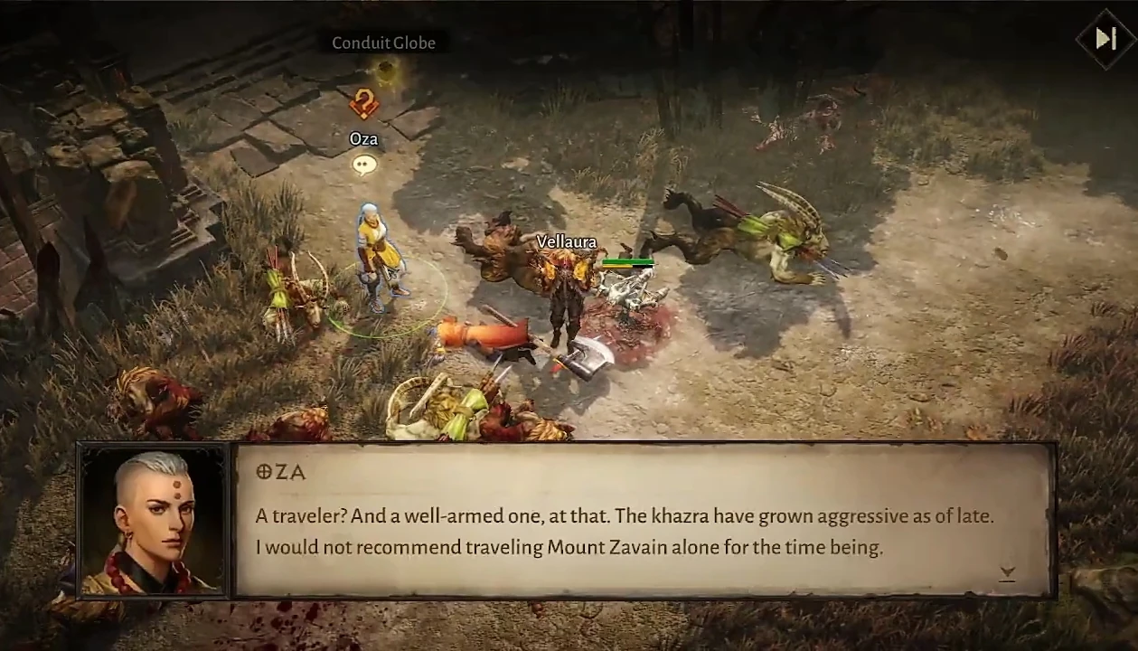 - Standard: A traveler? And a well-armed one at that. The khazra have grown aggressive as of late. I would not recommend traveling Mount Zavain alone for the time being.