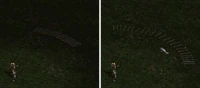 The player can control the spread angle of the volley using the distance between the point clicked and the character herself — clicking far away from the character results in a narrower, more focused volley, while clicking close to the character results in a much wider spread.