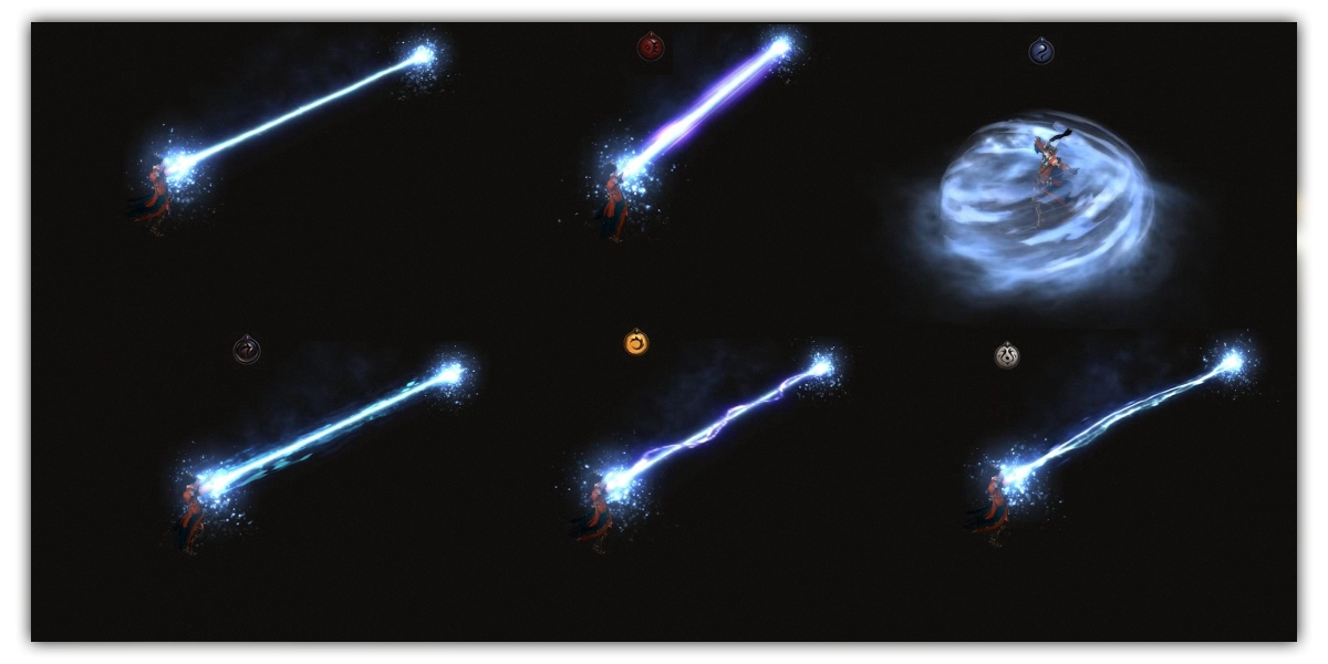 - Light of Grace (Legendary Source): Ray of Frost pierces through enemies, hitting all targets standing in line, each of them forming a separate blast.