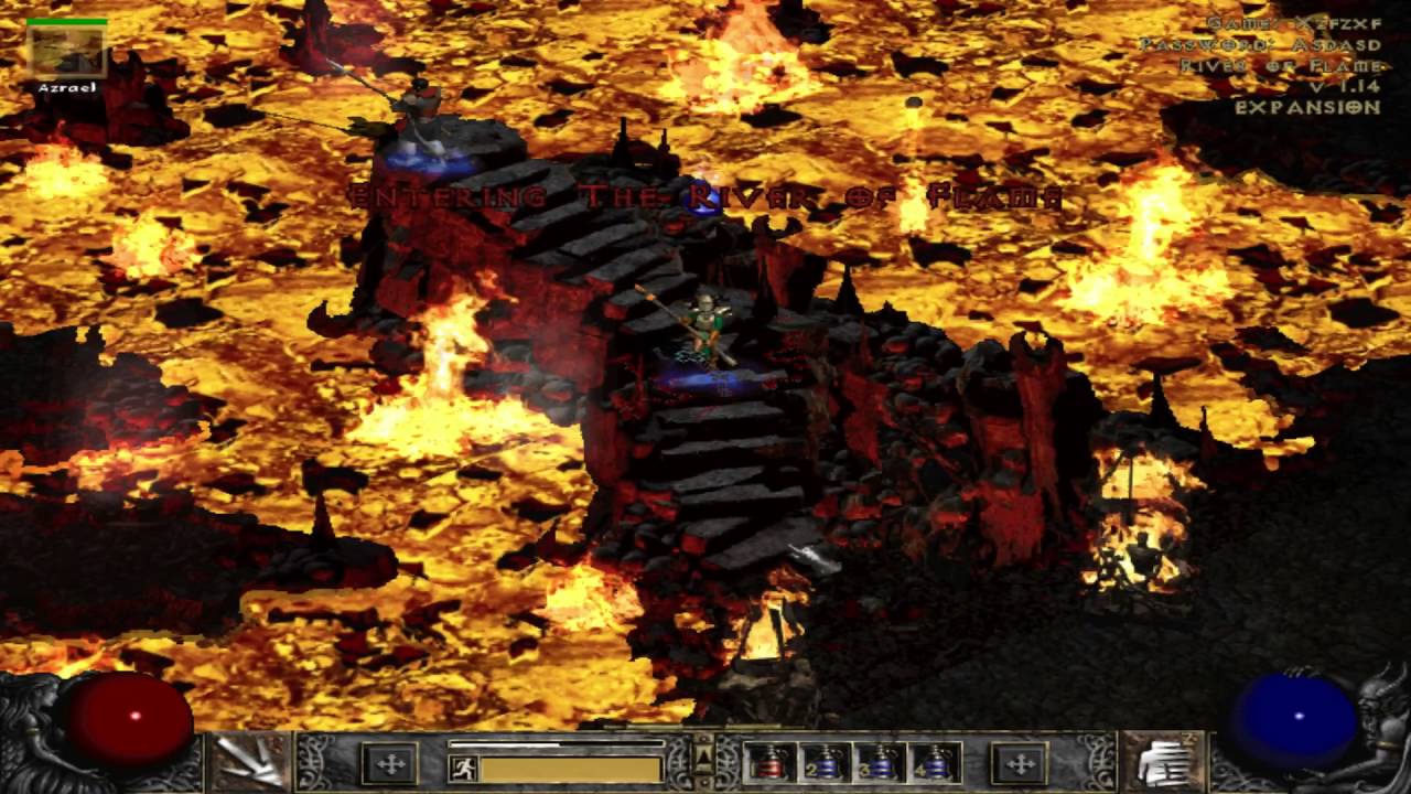 The River of Flame is a zone in Act IV of Diablo II. It can be reached by a staircase from the City of the Damned (the staircase is usually found near the City's waypoint).