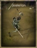 These skeletons spawn in mixed packs and work together with much better AI than they have shown in the previous games in the series. Often skeletons will hide in barrels, piles of bones and other breakable objects. Summoners may raise skeletons, though the numbers are not unlimited.