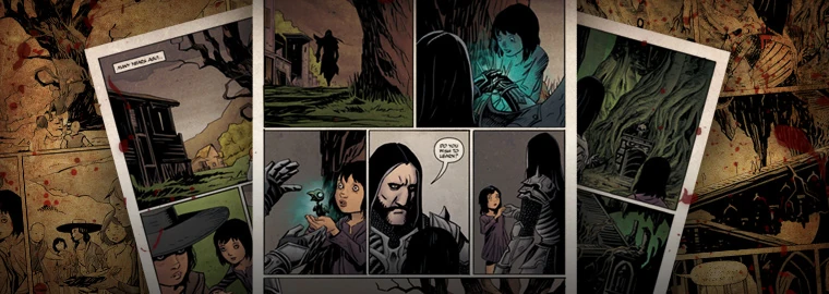 The comic depicts the female Necromancer of Diablo III, starting as a child. While playing with friends, she is approached by Master Necromancer Ordan, who brings a dead bird back to life via necromancy. She accepts his offer to join the Priests of Rathma, and he takes her to the Necropolis. Over the years, she studies the use of necromancy and academia. Many years later, now an adult, she is taken by Ordan to her village, which has been destroyed by cultists. Bodies of the villagers are present, which are implied to be the corpses of her childhood friends.