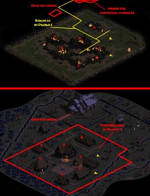 The original concept for Tristram included a temple, general store, and training center.[13]