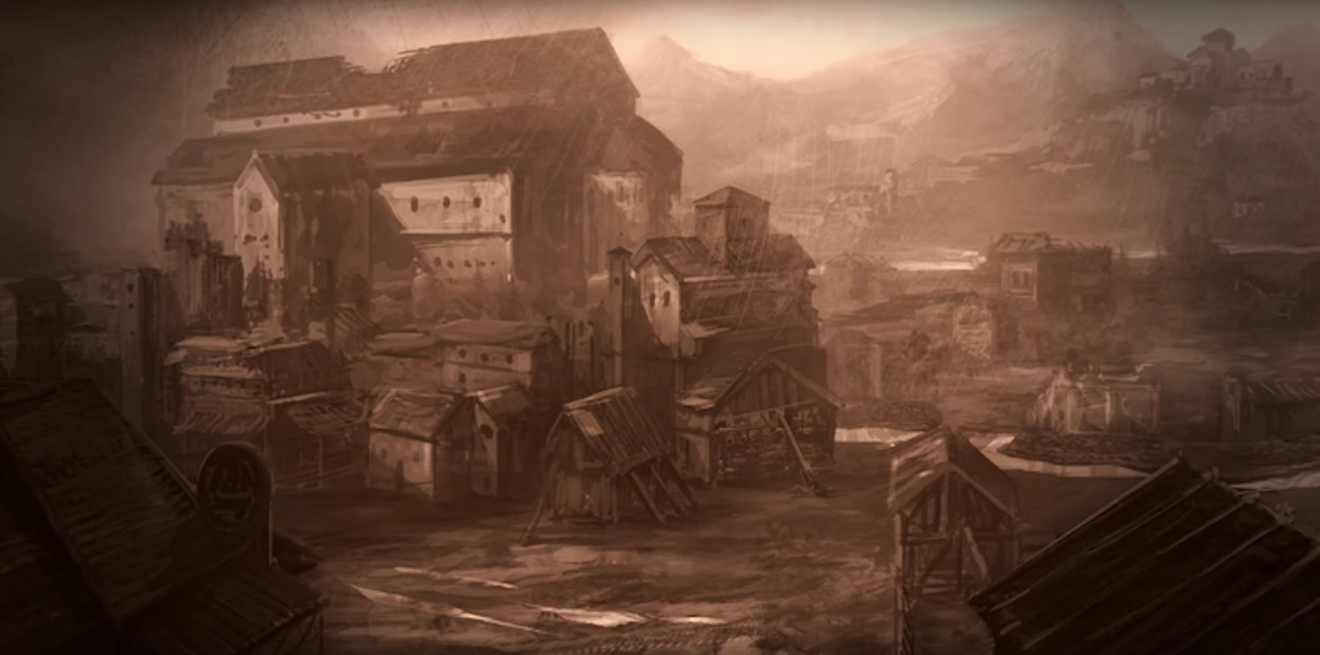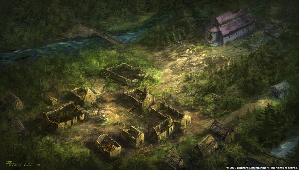 Concept of Tristram in an early Diablo III development stage by Peter Lee