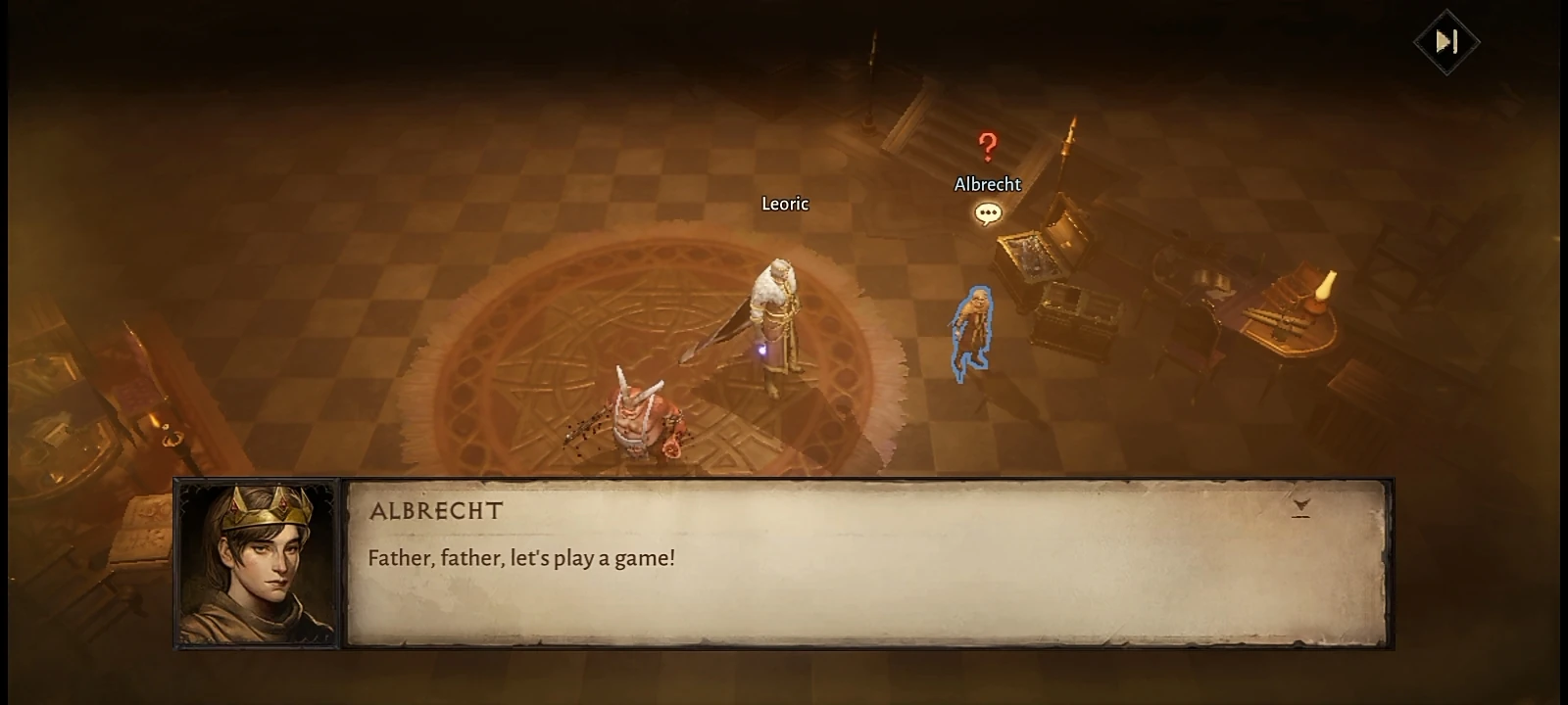 What about you, father? Do you like Tristram? - Leoric: Yes, well...In truth, I'm having trouble sleeping, and it has been difficult to think. Perhaps I should consult Lazarus.