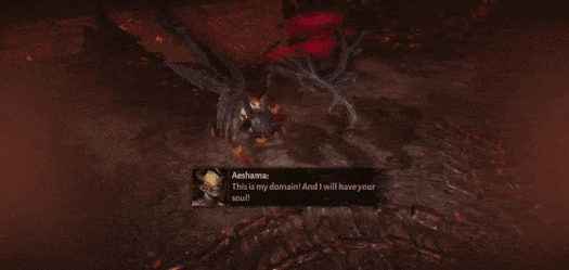 With the hero(es) accompanying her they went into the Domain of Horror which had been transformed into an illusion of Valla's village during its attack by demons as an attempt by Aeshama to break her mind. After being forced to watch her family die again and kill illusions of both her family and Josen, it was only the comfort provided by the hero(es) that stopped her from breaking. They were able to arrive at Aeshama's lair were she was defeated after a battle. As a last ditch effort, Aeshama tried to devour Valla's soul, stating it was special but was overpowered and defeated by Valla. Aeshama's last words hinted at Valla's heritage as a nephalem.
