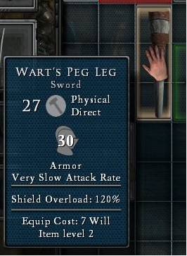 - There is also a reference to this leg in the game Hellgate:London from 2012, the leg can be found in the first level there. There it is called "Wart's Peg Leg" and has the same shape and the same use. Hellgate London was developed by previous members of the same studio that worked on Diablo I and Diablo II.